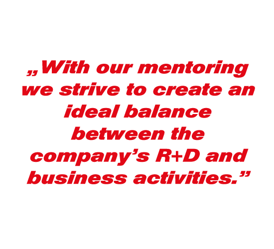 With continuous feedback, regular consultations, sharing of our best practices, our suggestions, and sometimes urging for management decisions, we assist our startup clients in focusing their available resources in the right direction and magnitude. The essence of our mentoring is to support either the entire management operation or just the realization of a project in such a way that the ideal balance of the company’s R&D and business activities can be achieved