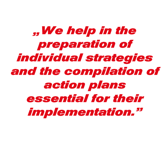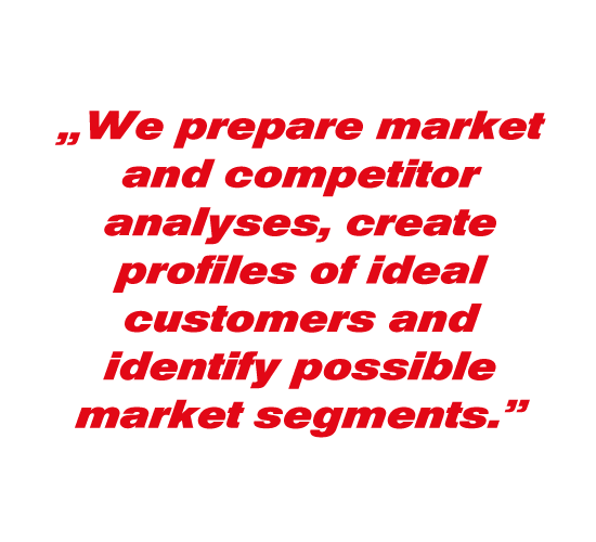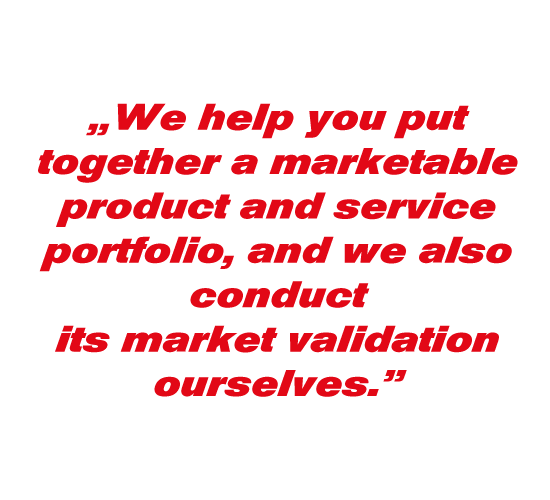 To achieve this, we collectively identify and formulate the company’s clear value proposition. We assist in compiling a marketable product and service portfolio, as well as pricing structure, and we ourselves carry out their market validation, which we fine-tune if necessary based on direct feedback from the market.